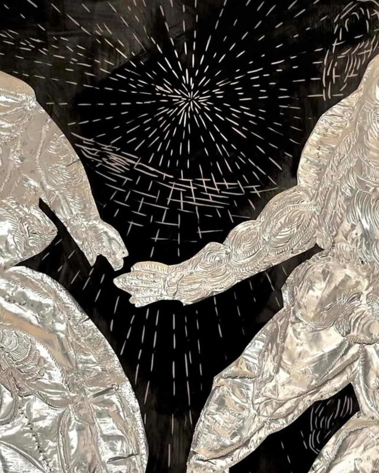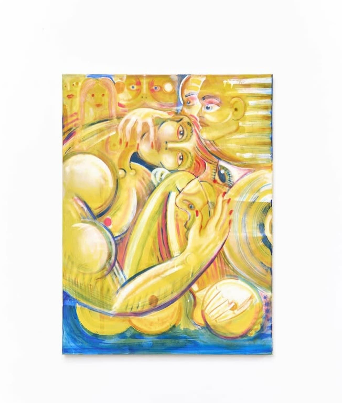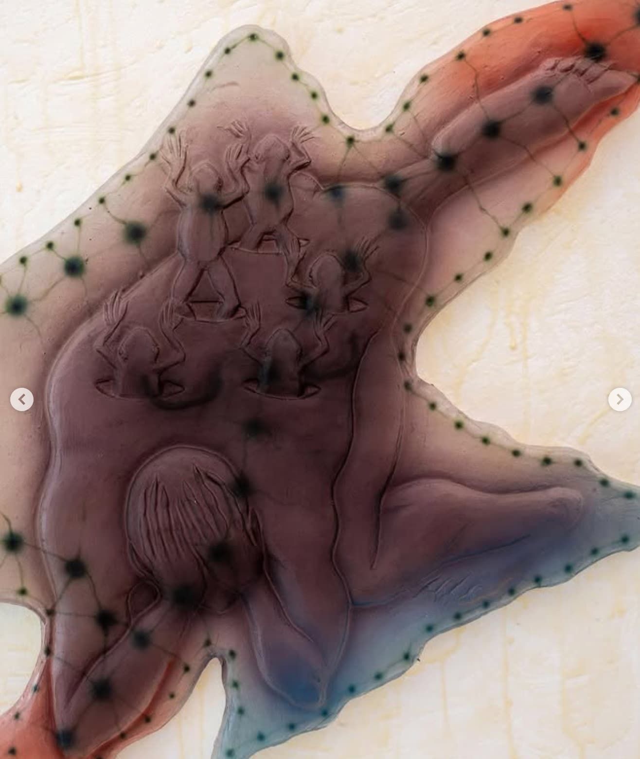Anna Fuglsang Houkjær er en af den slags kunstnere, der både rækker bevidst tilbage i kunsthistoriens formsprog samtidig med, at hun viser vejen frem imod en kunst, der stråler og omfavner os, som mødet med en tryg favn. I et væld af materialer udtrykker Anna sig med sikker hånd, og peger på alt det der er i overgangene – både dem, der skabes når et motiv rejser mellem medier, som fra papir til vævning til aluminium og træ, men også de, der findes motivisk i livets faser. Snyd ikke dig selv for et sjældent gavmildt blik ind i skabelsesprocessen omkring nye værker, du får ved at følge Anna på Instagram.